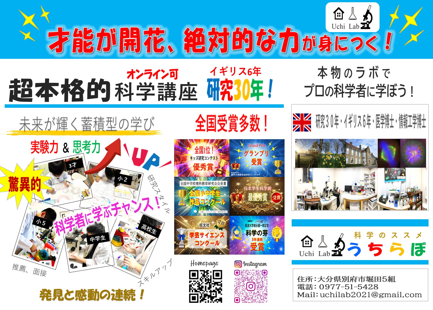 科学は楽しくて役に立ちます。各自の興味やレベルに応じて、「科学の目」を養います。科学の世界を知ると将来とても有利です。